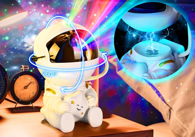 Нічник-проектор "Космонавт" перетворює вашу кімнату на дивовижну космічну пригоду, створюючи м'яке та мрійливе освітлення під чудовим зоряним небом.
