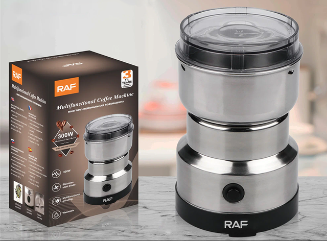 Кавомолка електрична з нержавіючої сталі, 150Вт, RAF-7113 / Кавомолка для кави та спецій