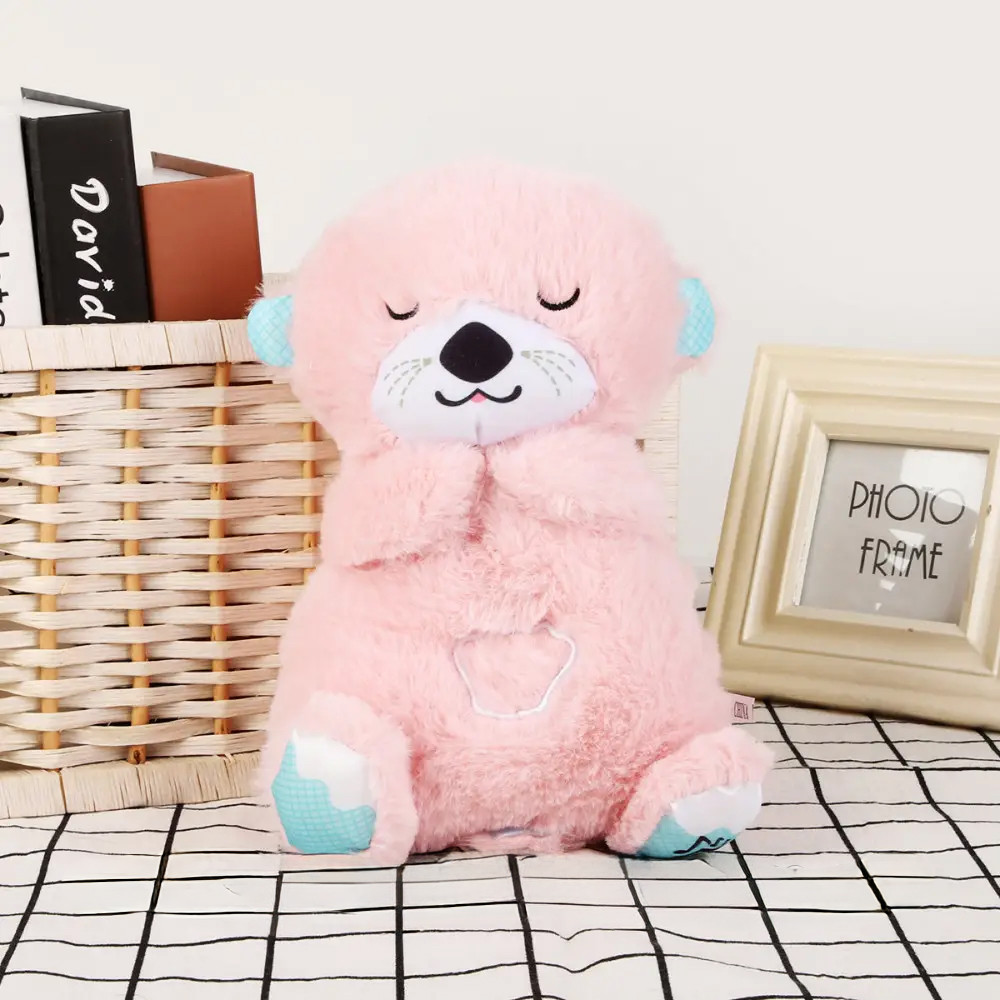 М'яка іграшка нічник з функцією дихання від батарейок «Видра» 33,5см, Рожевий / Іграшка нічник / Дитячий нічник